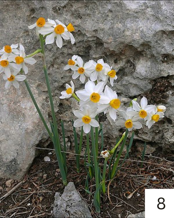 Le foto: Plain of Sharon visto da Monte Carmel,di Heatkernel; Giglio di mare di Stemonitis; Crocus sativus di coniferconifer; Rosa di Roccia di Alvegaspar; Tulipa di Sharon di Zachi Evenor; Giglio candido di Zachi Evenor; Meadow Saffron di Anenome123; Tulipa montana di Kenpei; Narciso tazetta di Zachi Evenor.